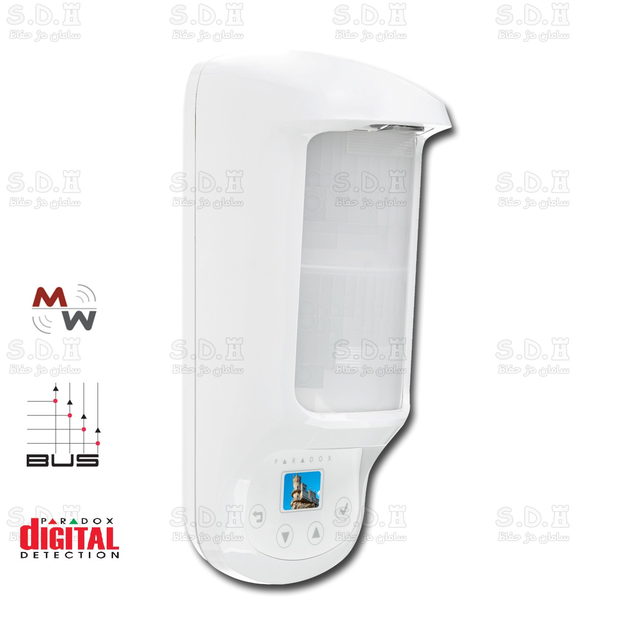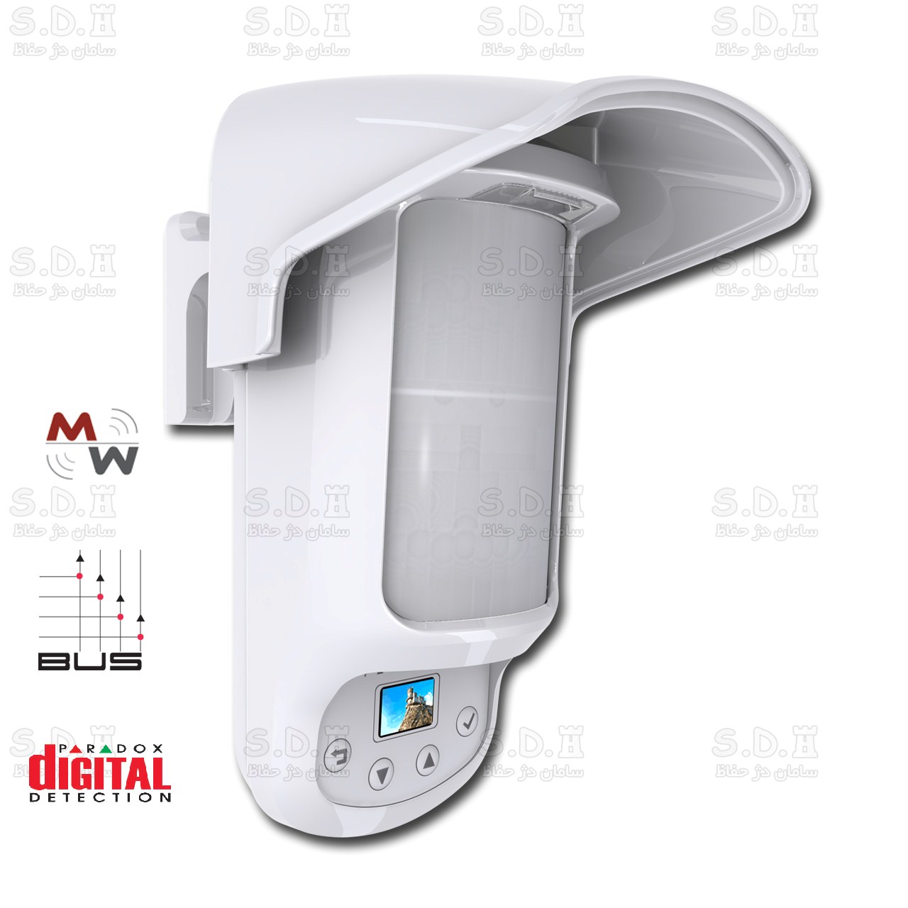 دارای لنز ضد ماسک و خرابکاری و تشخیص مانع پرتو دید چشمی تا 30سانتیمتر